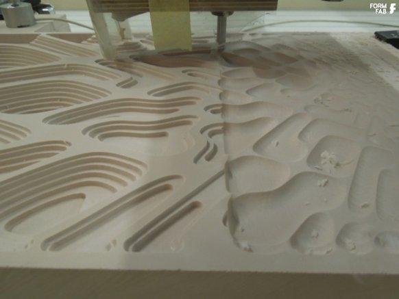 Für den Bereich der subtraktiven Verfahren arbeitet das FORMFAB mit einer CNC-Fräse, bei der mit einem Schrittmotor- gesteuerten Fräswerkzeug Teile aus Holz, Kunststoff oder Metall geschnitten werden. Vorteil dieses Verfahrens ist die größere Materialvielfalt und hohe Genauigkeit. Die so hergestellten Modelle sind qualitativ sehr hochwertig und präzise.